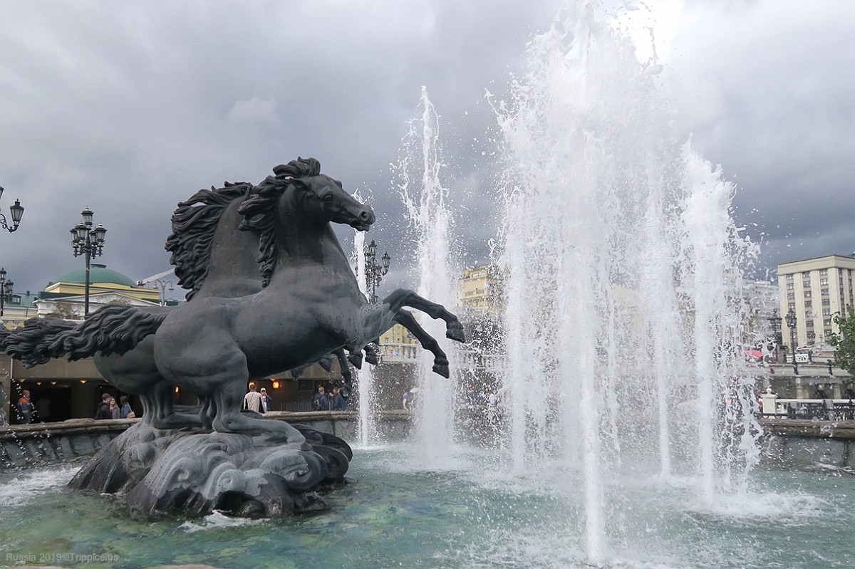 13 Red Square with Kremlin on right, St. Basil's ahead, and GUM department store on the left.